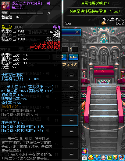 | 75 | 龙跃之左轮枪[4星] – 机械之灵 | *完成二次觉醒任务后可以从NPC小铁柱处获得此道具。 | ||