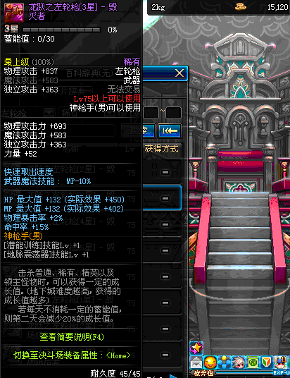 | 75 | 龙跃之左轮枪[2星] – 毁灭者 | *完成二次觉醒任务后可以从NPC小铁柱处获得此道具。 | ||