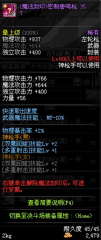 | 80 | (魔法封印)密制兽鸣枪357 | *Lv80~86普通地下城怪物掉落 |