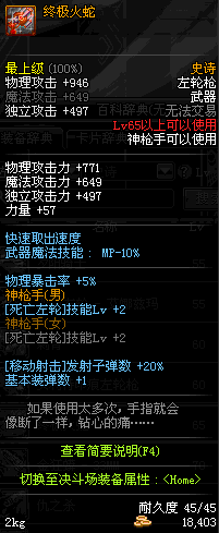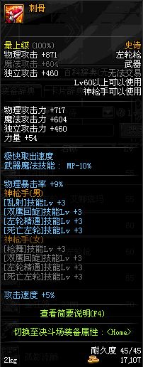 | 40 | 绝杀 - M1873 | *Lv39~46普通地下城怪物掉落 *在加百利的神秘商店购买 |