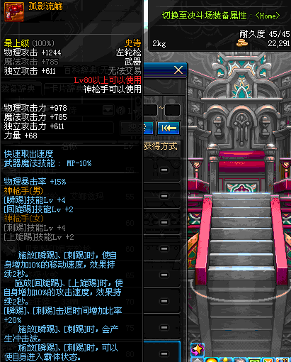 | 80 | 真·暗黑血之毁伤 | *设计图(70LV以上普通地下城 登场的NPC加百利 出售) *暗黑血之毁伤 → 用远古神器装备进化书升级(NPC船长鲁特 出售) |
