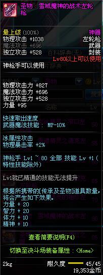 | 60 | 圣物 : 寒冰天使的威洛左轮枪 | *Lv58~66普通地下城怪物掉落 |